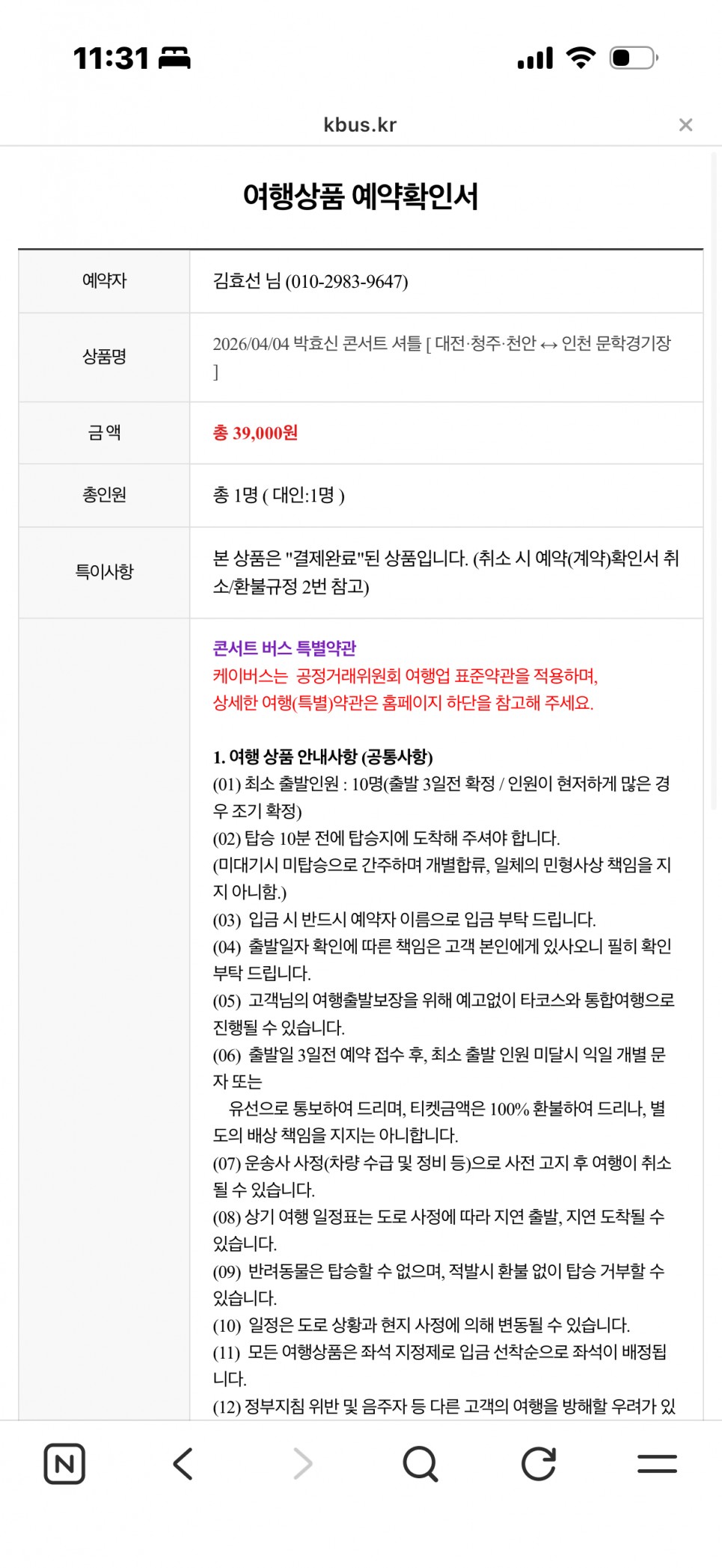 04/04(토) 박효신 콘서트셔틀 리무진여행