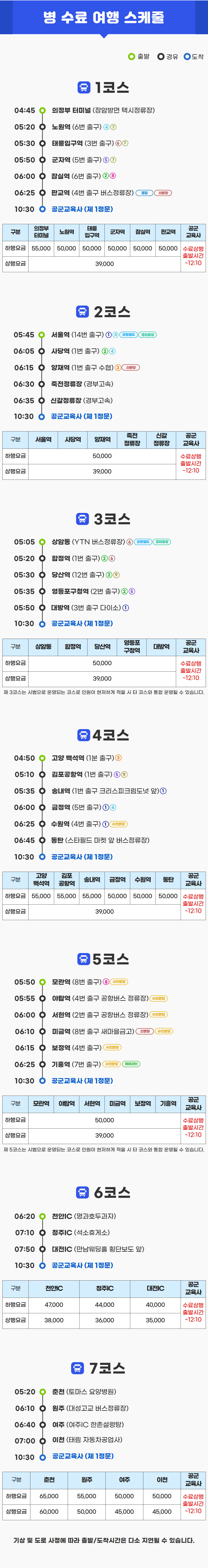 ※ 탑승시간 및 복귀시간을 철저히 준수 부탁드리며 시간 미준수로 인한 미탑승은 환불이 불가합니다.