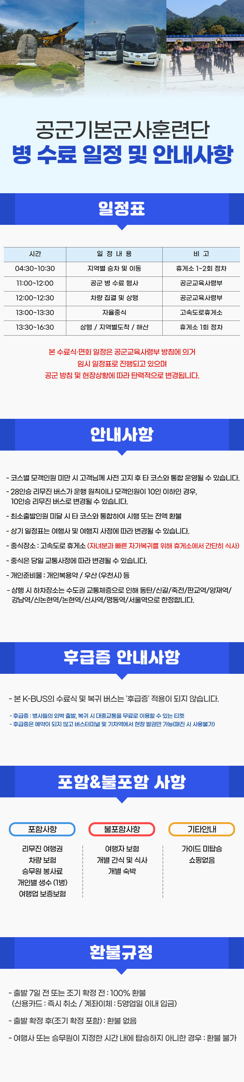 ■수료식 후 격려외박 시행(2박3일) ■수료식 후 아드님과 함께 집으로 귀가 ■상행 1인 편도만 예약시 자동 취소(연락 어려움으로 군인 단독 이용 불가)
