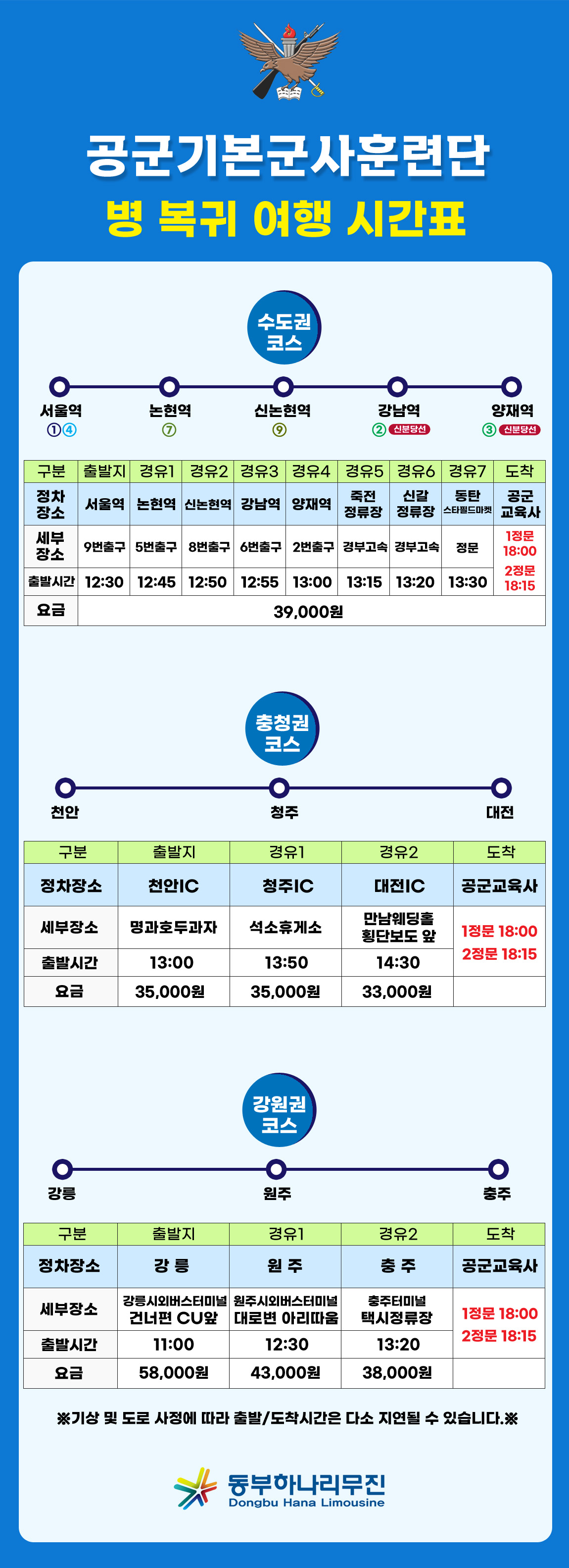 ■석식시간 부여(진주휴게소) ■공군교육사령부 제 1, 2 정문 모두 하차 가능