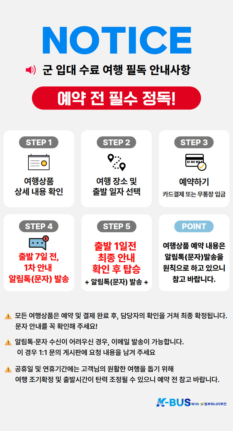 ※ 출발시간 5분전 대기해 주세요.