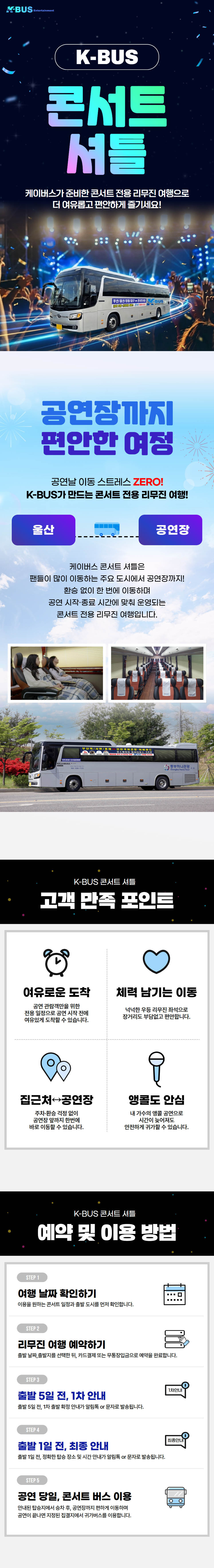울산 신복 로터리 (전세버스정류장) - 출발 시 지정 시간 10분 전 대기 부탁드립니다. - 당일 기상 및 교통상황에 따라 출 도착 시간은 다소 지연될 수 있습니다. - 예약 고객이 없는 승, 하차 지점은 무정차 통과 (소요시간 단축)