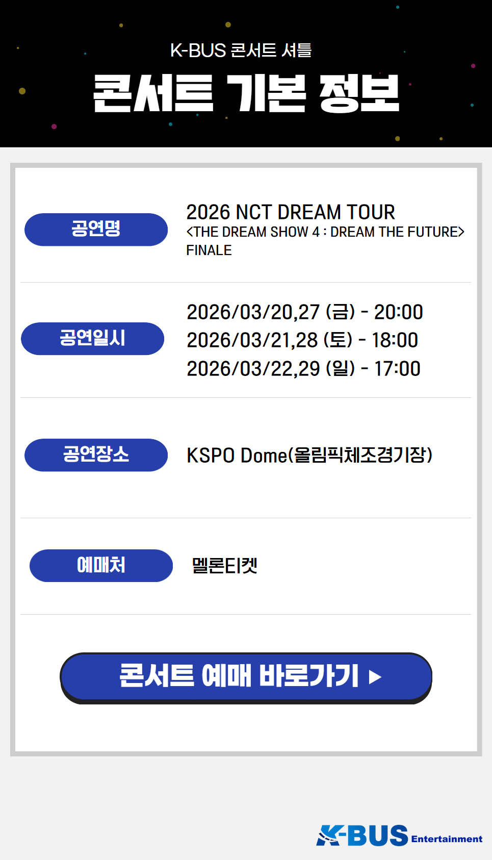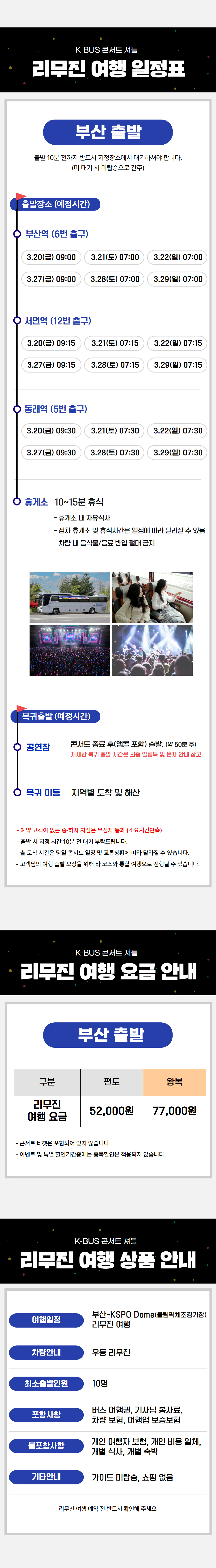 | ·불포함내역 | 콘서트입장권, 개인 여행자 보험, 개인 비용 일체 개별 식사, 개별 숙박, 가이드 미탑승, 쇼핑없음 |