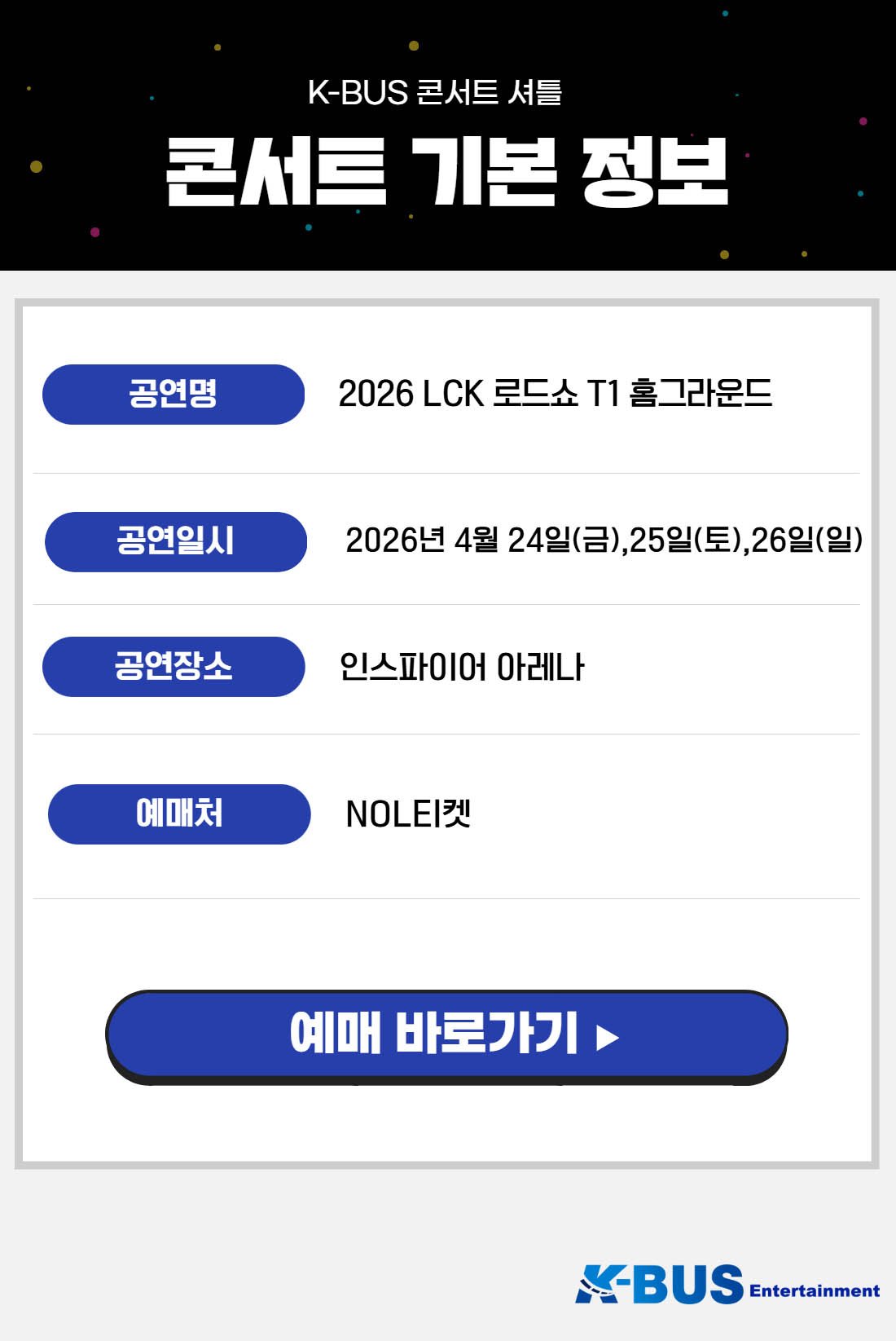 2026 LCK 로드쇼 T1 홈그라운드 콘서트 셔틀 [ 부산(부산역·서면·동래) ↔ 인스파이어 ](오픈예정)