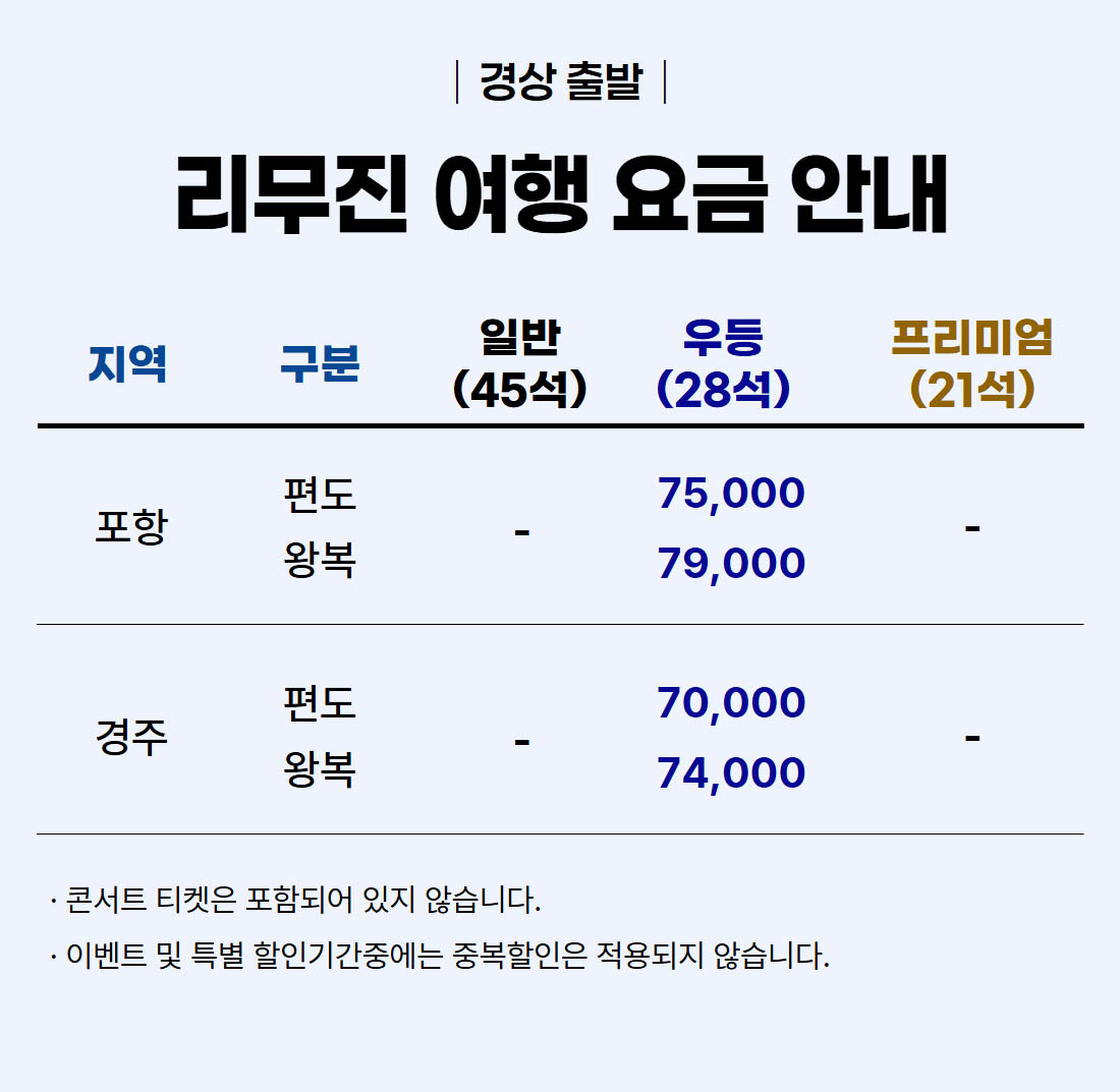 ·불포함내역 콘서트 입장권, 개인 여행자 보험, 개인 비용  일체, 개별 식사, 개별 숙박, 가이드 미탑승, 쇼핑없음