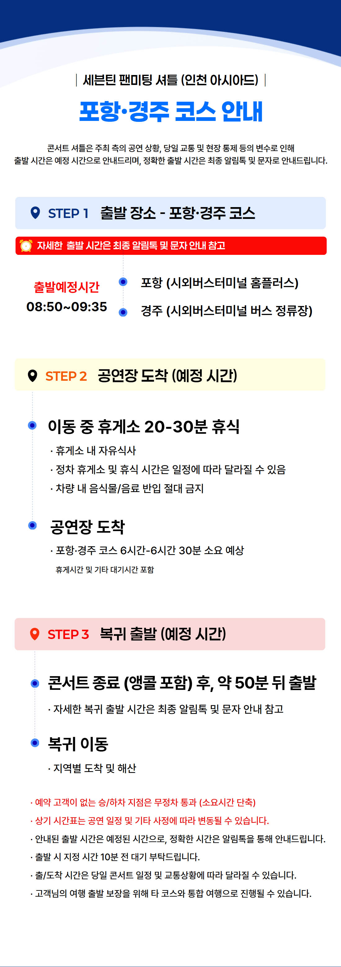 세븐틴 팬미팅 셔틀 [ 포항·경주 ↔ 인천 아시아드 ]